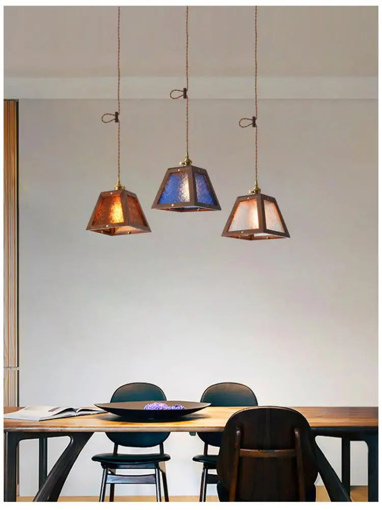 La suspension en verre Tiffany se distingue par son design traditionnel, inspiré des œuvres d'art du mouvement Tiffany. Sa structure en verre teinté offre une palette de couleurs riche et variée, allant du noir au vert en passant par le bleu, le jaune, et même le champagne. Cette diversité permet de l'intégrer harmonieusement dans des décors industriels, scandinaves, ou modernes. Le mélange de nuances crée un jeu de lumière captivant qui attire le regard et met en valeur les détails architecturaux de votre espace.