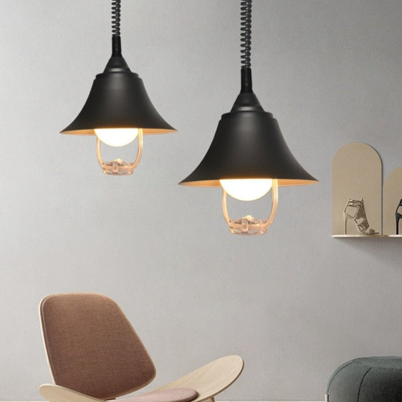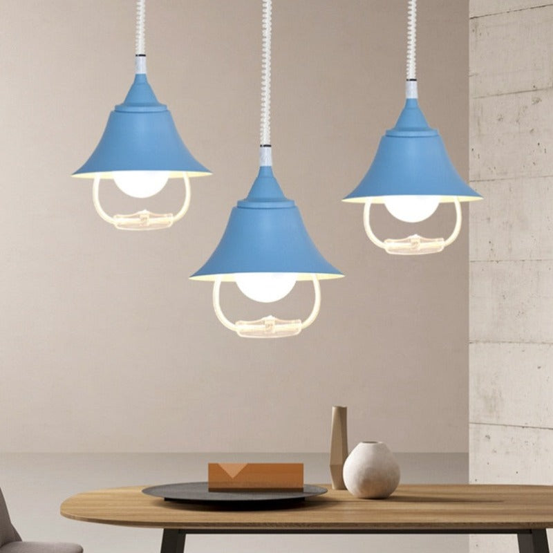Suspension industrielle abat-jour conique arrondi et coloré chione