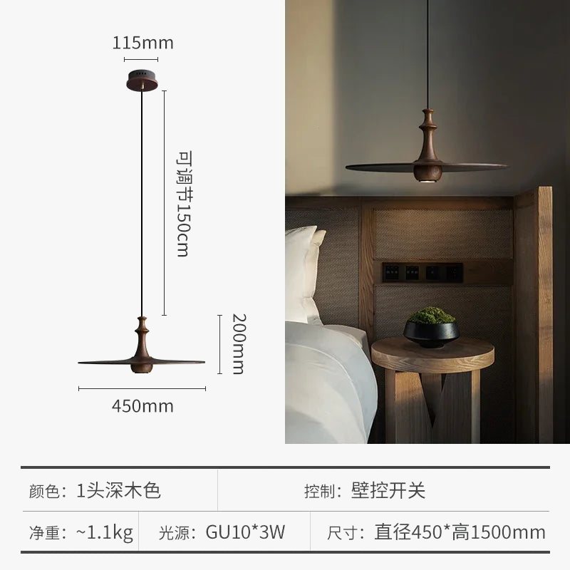 Suspension soucoupe volante en bois design minimaliste pour intérieur