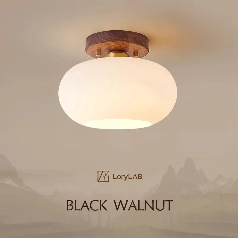 Nom du produit | Walnut wood ceiling light, wabi-sabi modern style, aisle lighting for bedroom, living, corridor, aisle balcony, entrance hall |